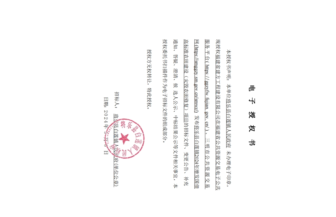 | [E************001001]将乐县白莲镇2024年增发国债高标准农田建设(灾毁农田修复)项目.SMZF |